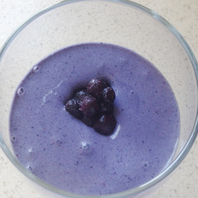 *I just pop whole bananas in the fridge the morning I know I want to use them. When I'm ready to go I peel, and cut them into 3-4 pieces. You could always do that ahead of time, place them in a Ziploc bag, and they'll be all ready to go when you are!
